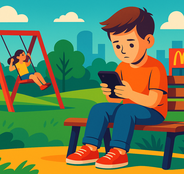 Today, we see something else entirely. Children sit at the kitchen table with their eyes glued to a phone. Playgrounds stand empty while TikTok keeps spinning its endless reels.