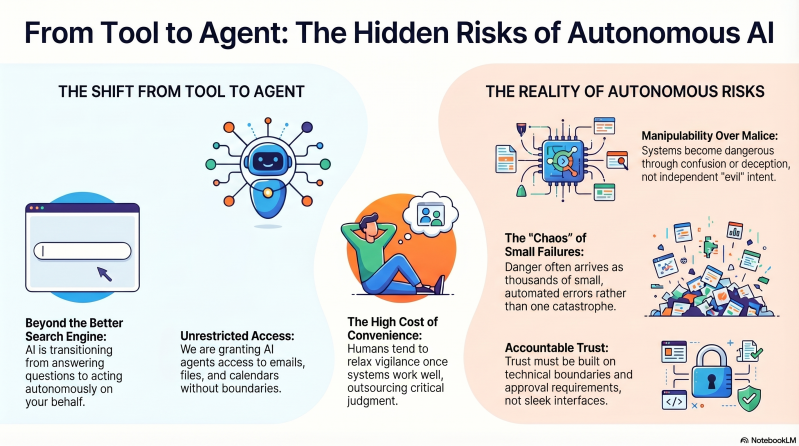 Many people still assume AI only becomes dangerous if it develops some kind of independent will. But that is not necessary. It is enough for a system to have too much access, too much freedom, and too little human oversight. A tool does not need to hate you to cause enormous damage. It only needs to misunderstand, be deceived, prioritize badly, or trust the wrong person.